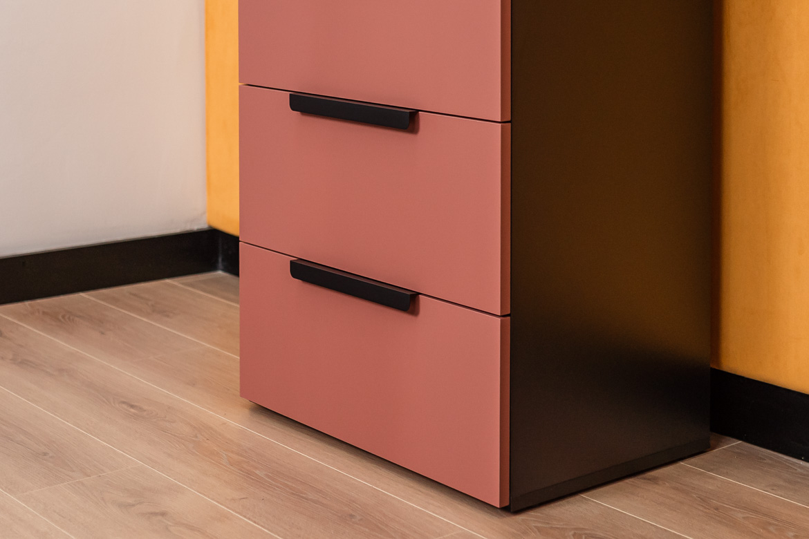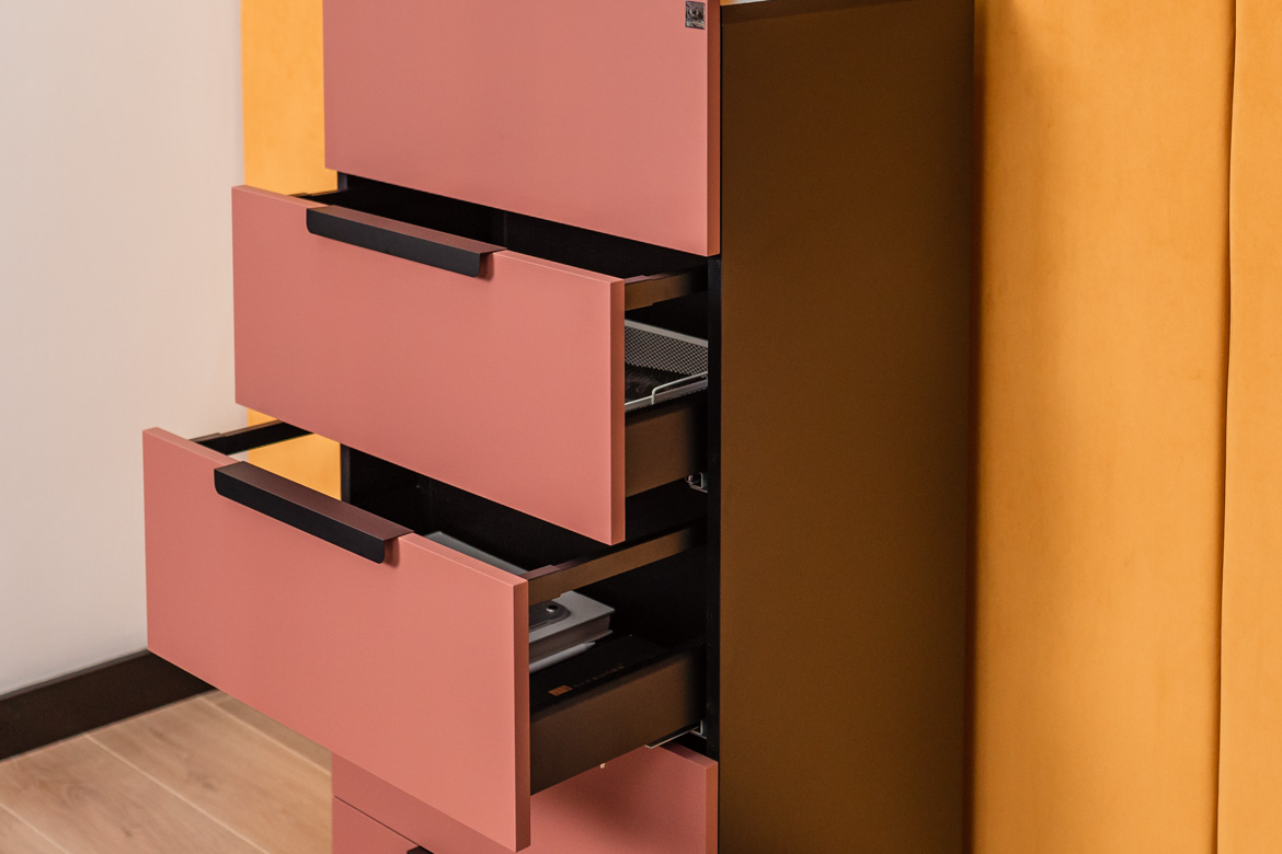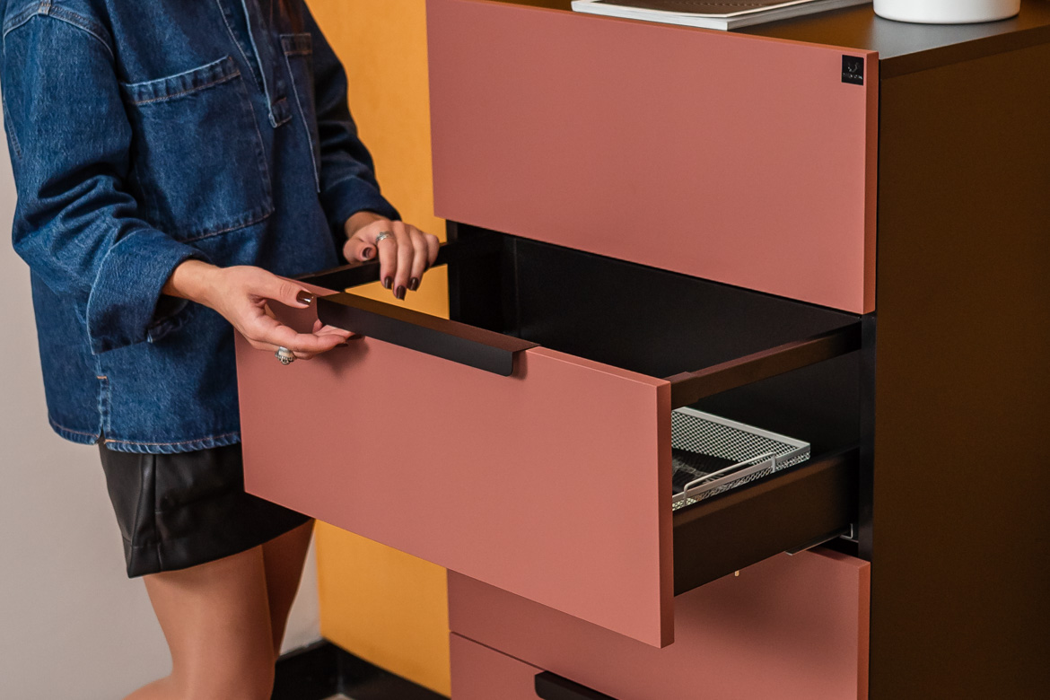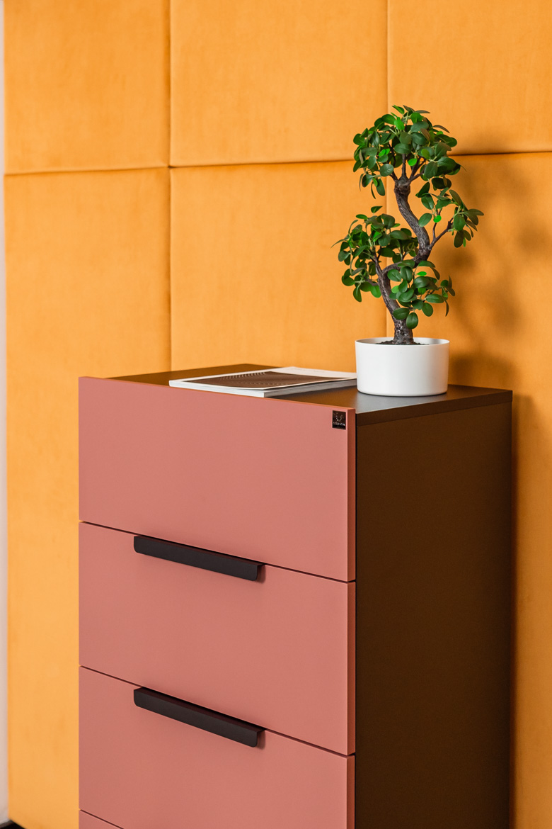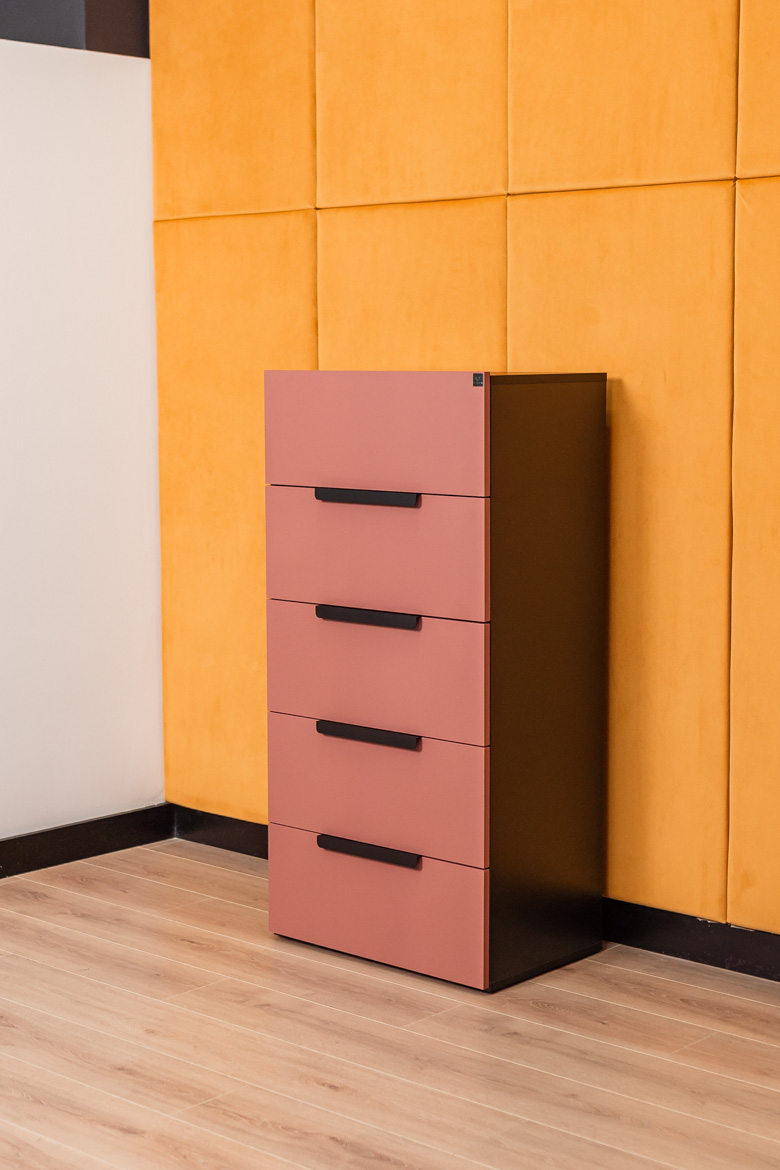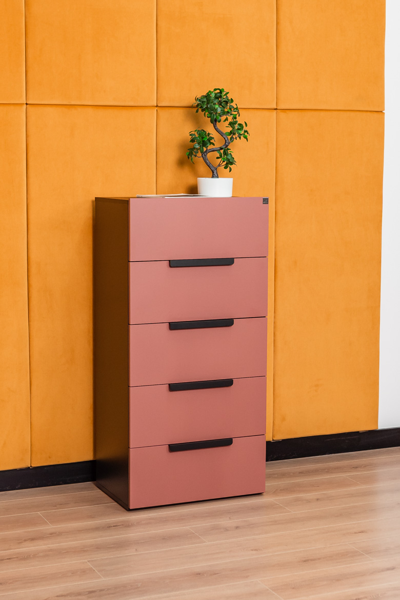 • fronty komody: płyta meblowa w kolorze cegły