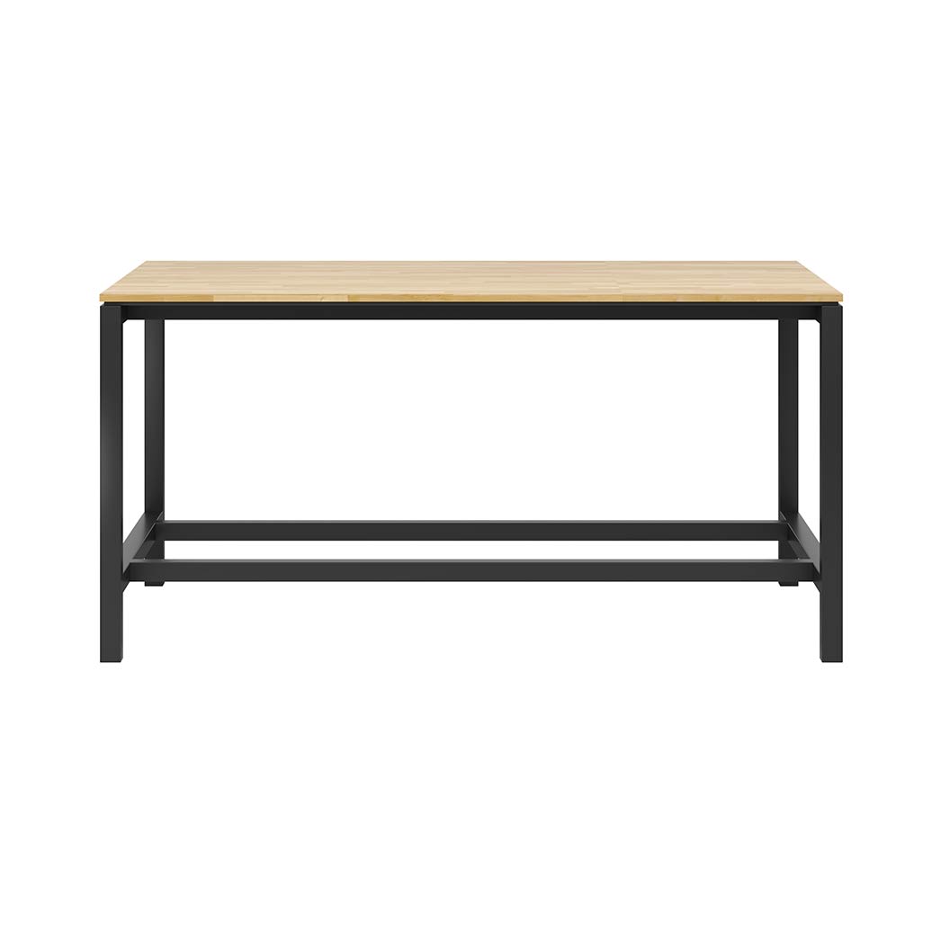 Wysoki stół do jadalni firmowej zaprojektowany z myślą o codziennym użytkowaniu w przestrzeniach pracowniczych, takich jak stołówki oraz strefy lunchowe w biurach. Blat imitujący drewno nadaje stołowi estetyczny, naturalny wygląd, który dobrze komponuje się z nowoczesnymi i industrialnymi aranżacjami wnętrz.