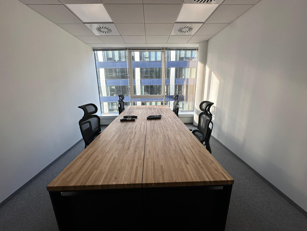 Dla firmy Bezpieczny Wynajem w Warszawie wykonaliśmy cztery biurka z kontenerkami, które zostały połączone w jedno duże stanowisko pracy dla zespołu.
