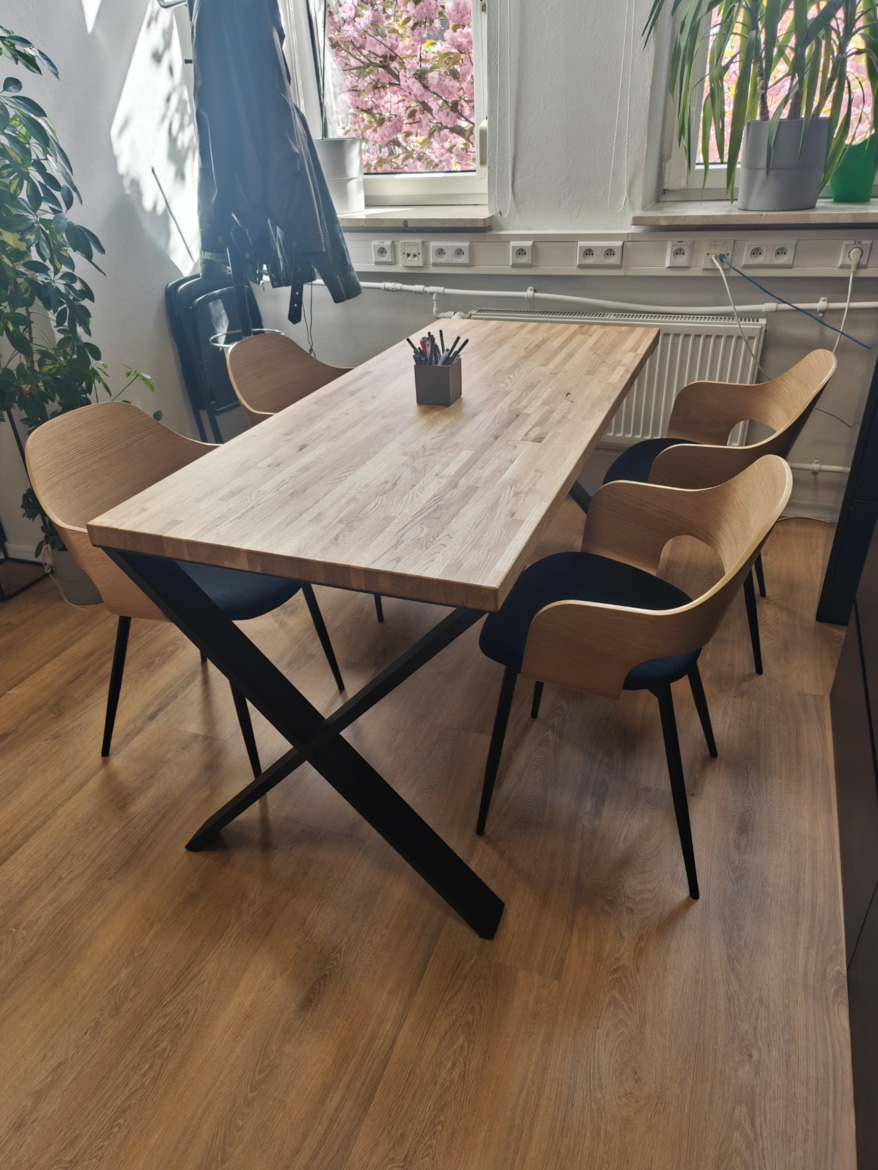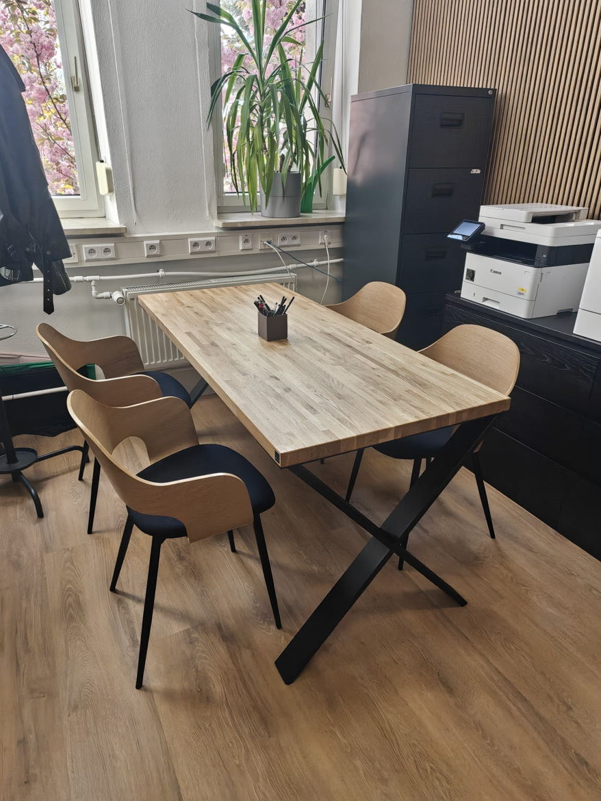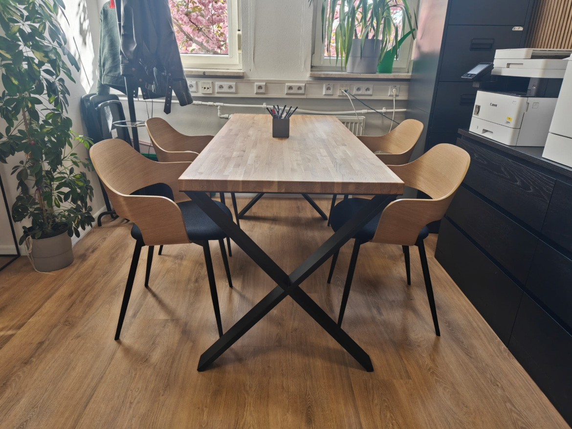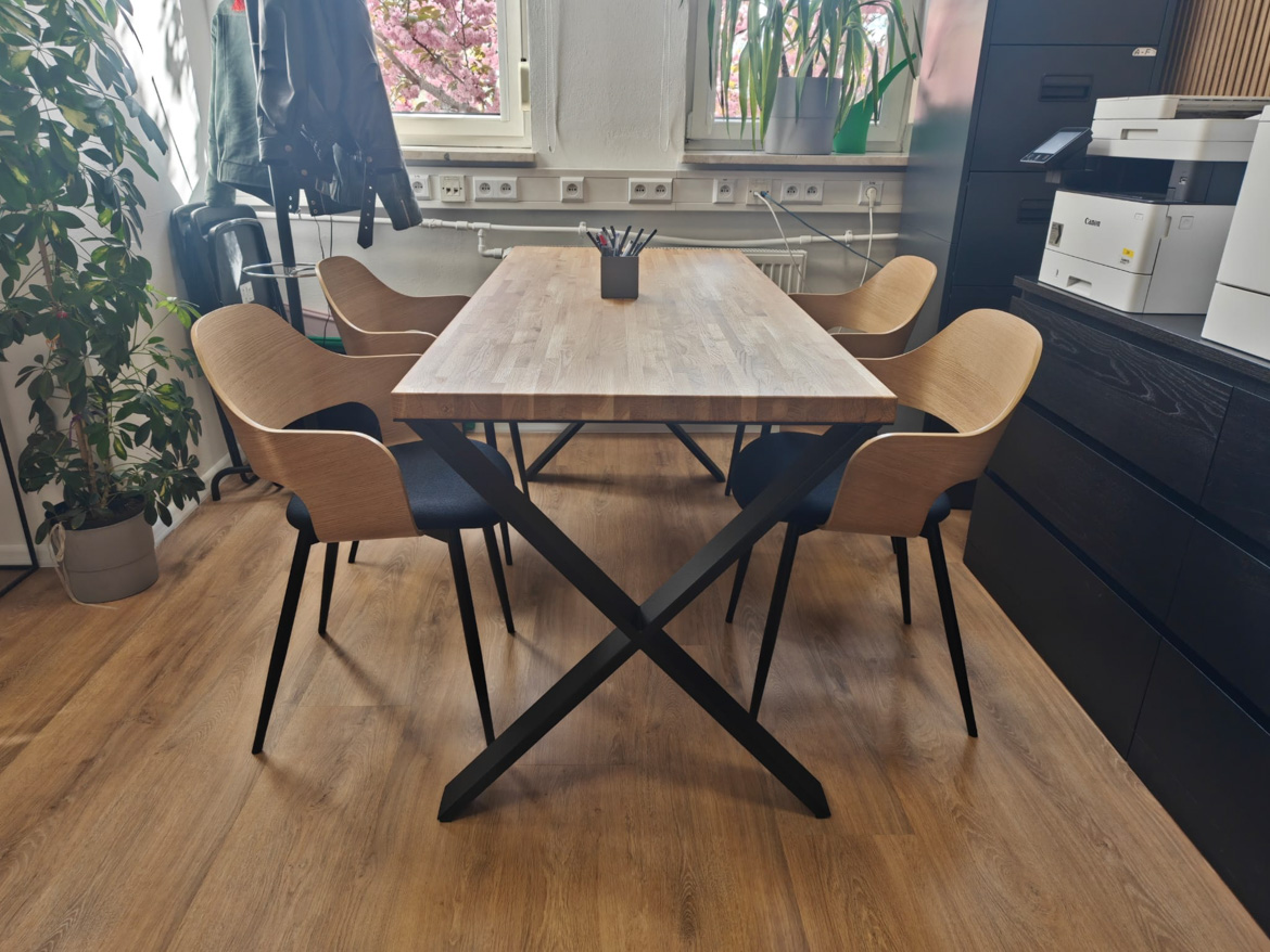 Bazą realizacji był nasz model X Loft, który wyróżnia się charakterystyczną stalową podstawą w kształcie „X”. To właśnie ona nadaje całości industrialnego charakteru i zapewnia bardzo dobrą stabilność.
