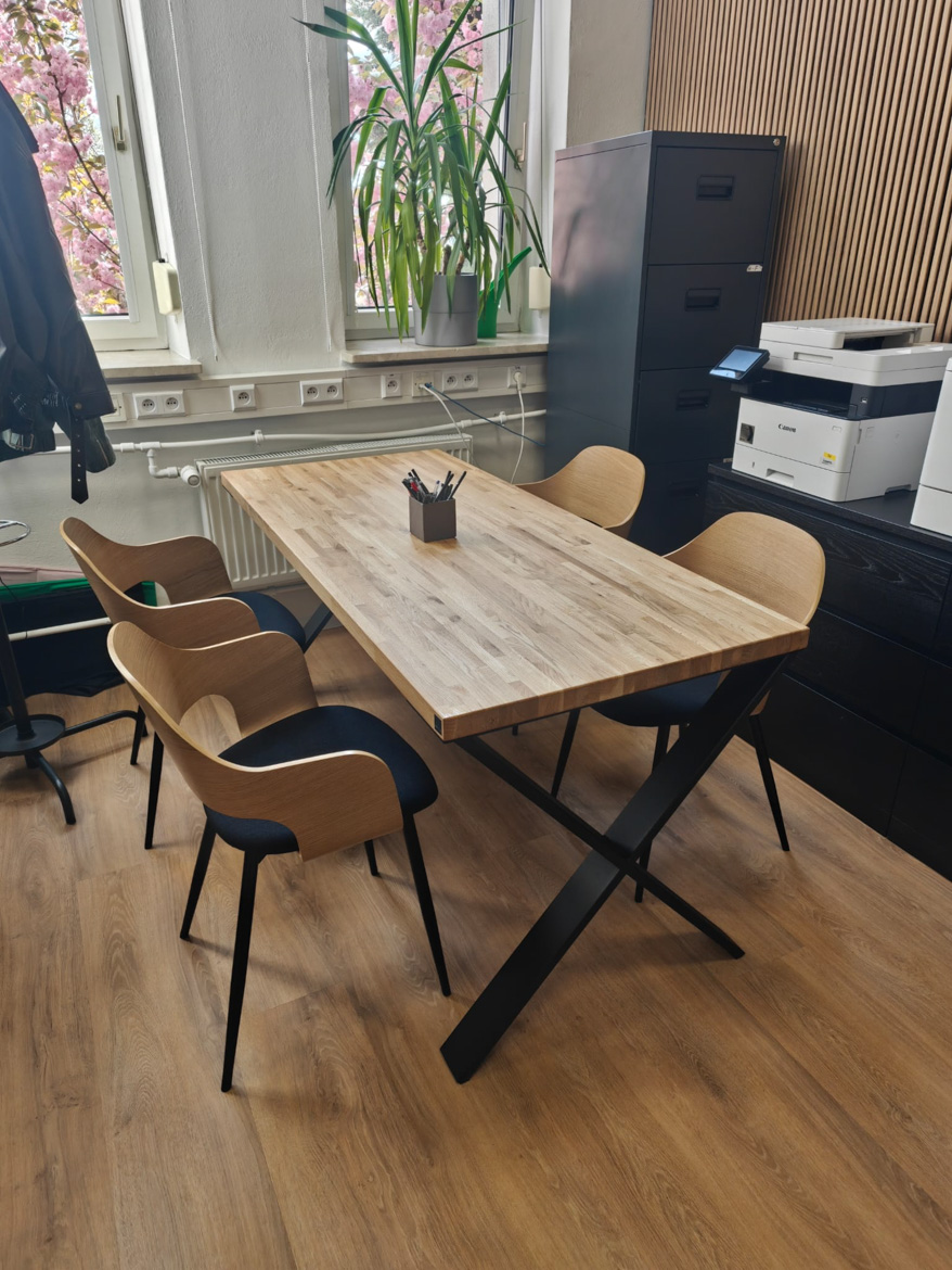 Dla Polsko-Japońskiej Akademii Technik Komputerowych w Warszawie wykonaliśmy jeden z naszych nowszych modeli – stół industrialny X Loft, który trafił do przestrzeni przeznaczonej na spotkania i codzienną pracę zespołu.