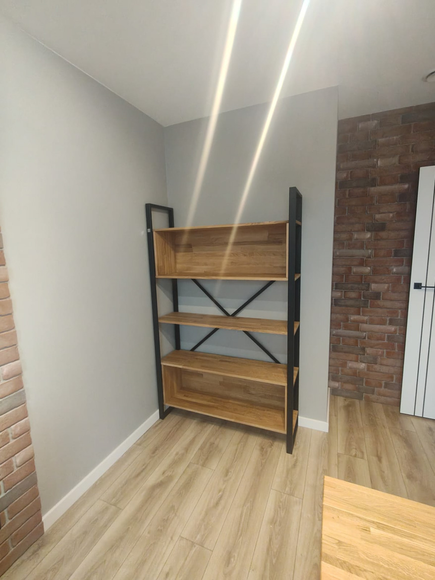 Dla Pana Rafała z Mniowa, niedaleko Kielc, wykonaliśmy kompletne umeblowanie biura. Powstało solidne biurko z drewnianym blatem, komoda oraz regał z pięcioma półkami.